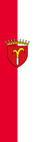 The coat of arms was approved by the town council in June 1972. The official certificate of grant from the Burgenland state government, dated July 4, 1973, describes it as a fire hook. The municipality's website mentions the possibility that the symbol could be a pruning knife, a reminder of the town's time as the largest wine-growing community in the Holy Roman Empire during the 17th century. The count's coronet is a reference to the Lords of Mattersburg, who built the castle in the 13th century. City colours: red and white.