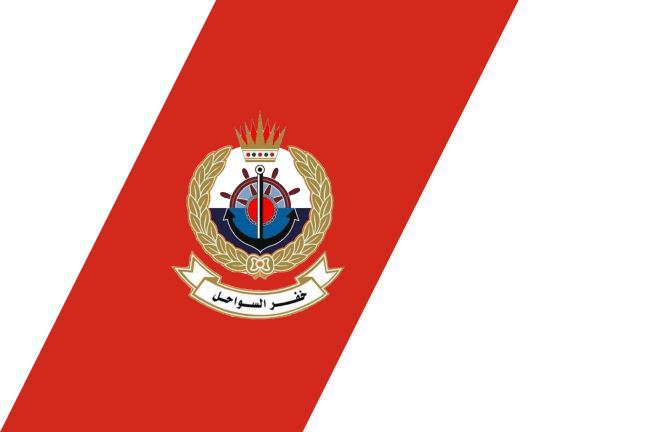 The Bahraini Coast Guard racing stripes used on the ARES 58 FPB Multi-Role Patrol Craft consists of a wider red (stern) and a narrow white stripe (nose) interrupted by a transparent part. The Coast Guard emblem is placed on the middle of the red stripe.