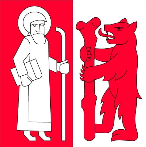 the emblem shows Saint Gall and his bear (Part of the Gallus traditions is the