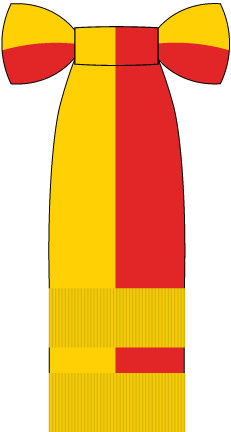 The sash of the mayor is a horizontal bicolor of the flag's colors (yellow and red), with the coat of arms over the center shifted closer to being horizontal on the bands.