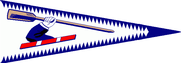The pennant (or if you prefer: burgee) is triangular and displays the arm with oar alone. On upper and lower edge of the pennant is an indented dark blue bordure.