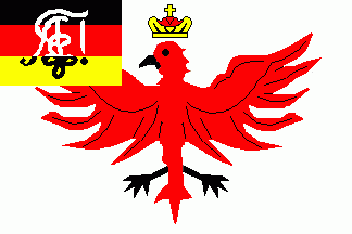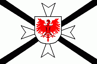 The white flag was parted by a black saltire. On its centre were the arms of Brandenburg (Kurmark whad been its core area), a red eagle on a white shield.