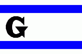 The flag was white with a black initial "G" at hoist between two blue horizontal stripes.