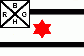 The white canton was fimbriated black and parted by a black saltire with black inscriptions on every quarter as follows: "B" (top), "R" (hoist), "G" (fly) and "H" (bottom).