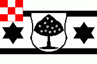 Hevella is the Latin name of the River Havel. It is a white flag with a light blue centred cotised cross and a shield divided per fess with a white chief and a red base (see left image above).