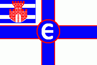 It is a white and blue flag divided by saltire. In the white fields are black inscriptions "D.R.G."(hoist) and "BAYER(in inverted kommas)"(fly). In the centre of the flag is a yellow winged rampant lion keeping a globe in his clutches. He has an oar on his back and a cadduceus in his left clutch.