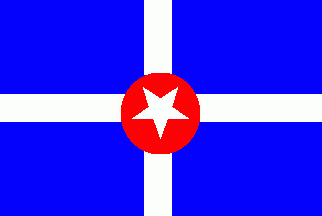 It was a blue flag with a white centred cross and a red roundel with a white 5-point star in its centre. It is the novadays flag without canton.