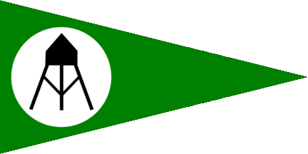 The pennant is dark blue, shifted to hoist is a stylised yellow crown above from three wavelets yellow.