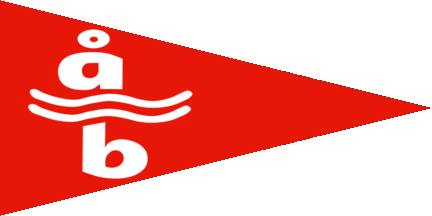 The pennant is red. Shifted to hoist are two white wavy lines between white minuscles "å" above and "b" below.