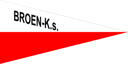 The pennant is horizontally parted of white and red. On the white half is a descending black inscription "BROEN-K.s.". The club is located in the south of København.