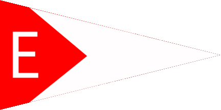 The pennant is parted per chevron pointing to fly, at hoist red with a white initial "E" and at fly white.