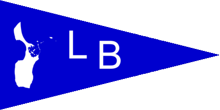 The pennant is blue. At hoist is the silhouette of the name giving island in the Kattegat. Ists biggest settlement is Lidholm. Langør is located between Zealand and Funen. On centreare white initials "LB" in bend.
