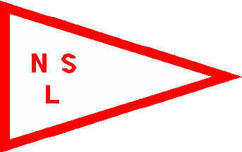 The pennant is white fimbriated red with red inscription shifted to hoist "NLS" with the "L" shifted to bottom.
