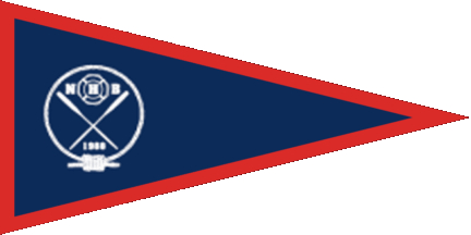 The pennant is blue. Shifted to hoist on a white disc is a red steering wheel charged with red initials "NB" (see left image above).