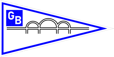The pennant is white cotised blue white with a black bridge with three arches and in canton a blue square with white inscription "GB" in bend. Nørre Alslev is located on the northern shore of Falster Island.