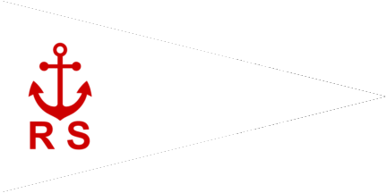 The pennant is white. At hoist is a red anchor in pale and below red initials "RS".
