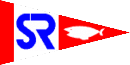 The pennant is red, shifted to hoist parted by a broad white stripe with blue inscription "SR".