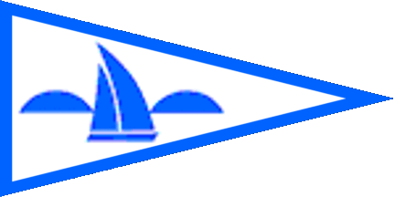 The pennant is light blue. At hoist in a white annulet are three white optimist sails with black marks in bend.