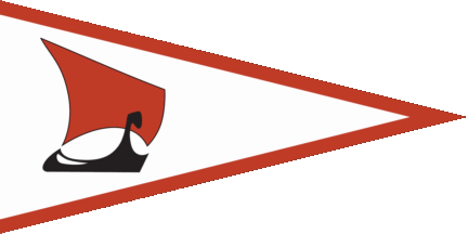 The pennant is white with red fimbriation and a black viking ship with red sail at hoist.