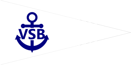 The pennant is white. Shifted to hoist is a dark blue anchor, on its centre superimposed by dark blue initials "VSB".