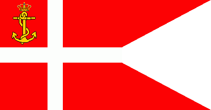 This ensign was introduced by Royal resolution of 11 August 1916 for use by vessels that were not warships but were nonetheless operated by the Ministry of Defence (formerly known as the Ministry of the Navy, "Marineministeriet"). The vessels using the ensign were charged with maintaining light houses and light ships, sea marks, etc. Royal resolution of 8 September 1916 extended the use of the ensign to the pilot service as well. The flag is listed in the 1979 flag book ofChristian Fogd Pedersen, and is presumably still in use.