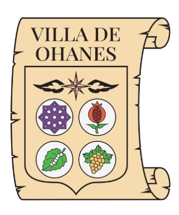 The shield lacks the usual crest of the Royal Crown of Spain because it is composed within a semi-rolled parchment, whose heading is the identification Villa de Ohanes.