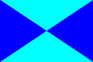 3. English Wikipedia displays a flag in the same colours (quartered per saltire light blue, blue, light blue, blue). However this flag does not carry these devices.