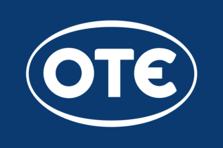 The flags of the Hellenic Telecommunications Organisation are blue with the