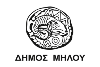 The flag of Milos (Kokkonis website) is white a large light blue border and the municipality's emblem and namein the middle.