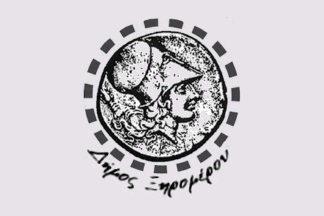 The flag of Xiromero features an ancient coin on a white field.