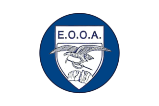 The flag of the Hellenic Federation of Mountaineering and Climbing is white with the federation's emblem in the center.