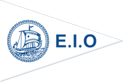 The flag of the Hellenic Sailing Federation is a white field with the federation's emblem in the center.