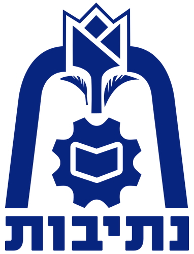 Keywords: netivot | mo'atza mekomit netivot | text: hebrew (blue) | wheat ears: 2 (blue) | cogwheel (blue) |