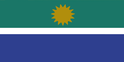 It is green over blue, separated by a narrow white stripe, with a yellow sun(?) symbol on the green band.