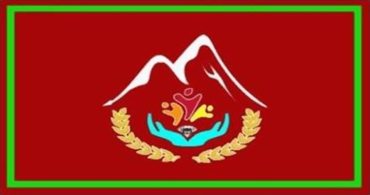 image located by Valentin Poposki, 23 December 2025The flag is maroon with the emblem inside a green frame.