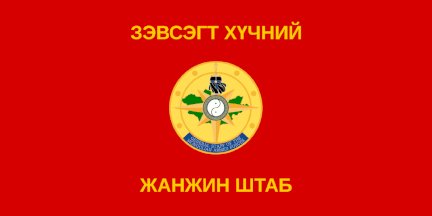 The current pattern of Mongolian Armed Forces colours, while insipired by the national flag, is a throwback to the traditional Mongolian flag design. Red field, proportions (width or height to length) 2:1,