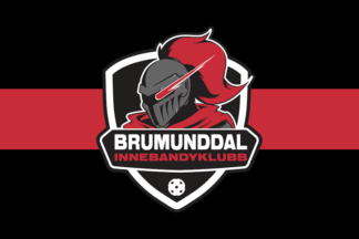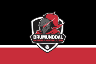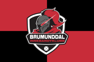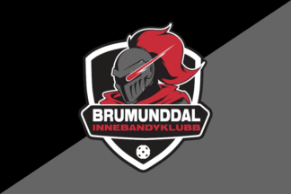 The flags of Brumunddal IBK (Brumunddal Innebandyklubb) from Brumunddal in Ringsaker Municipality use black and red or black and gray with the badge centered.