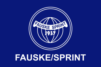 The flags of FK Fauske/Sprint (Fotballklubben Fauske/Sprint) from Fauske are dark blue with the badge centered.