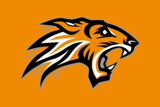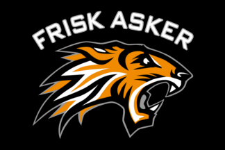 The flags of Frisk Asker (Frisk Asker Ishockey) from Asker are orange or black with the tiger badge centered.