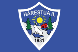 The flag of Harestua IL (Harestua Idrettslag) from Harestua in Lunner Municipality is blue with the badge centered.