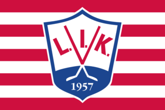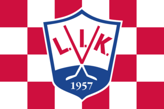 Several flags of Lillehammer IK (Lillehammer Ishockeyklubb) from Lillehammer have been found using red, white or blue backgrounds with plain, striped or chequered backgrounds, and the badge centered.