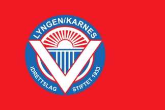 The flags of Lyngen/Karnes IL (Lyngen/Karnes Idrettslag) from Lyngseidet in