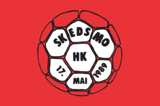 The flag of Skedsmo HK (Skedsmo Håndballklubb) from Skedsmokorset in Lillestrøm Municipality, ex Skedsmo Municipality is red with the logo centered.