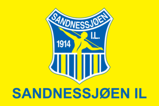 The flag of Sandnessjøen IL (Sandnessjøen Idrettslag) from Sandnessjøen in Alstahaug Municipality is yellow with the badge centered.