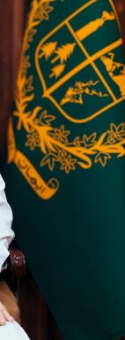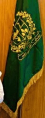 The legislative assembly flag is a green field with the assembly logo centered upon it, in gold.