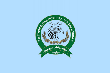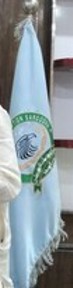 A light blue flag, with the municipal emblem in the centre. The flag in use can be seen in this photo.