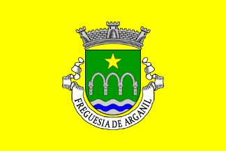 Mural crown Argent with four visible towers (town rank) and white scroll with inscription in black capitals "FREGUESIA DE ARGANIL".