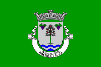 As usual for these new communes with hybrid toponyms created in 2012 by joining two or more pre-existing communes, in a time when most of them had already established flags and coats of arms, the newly created arms are also themselves a hybrid of those previous ones — such as in this case: The grapes from Azoia, the pine and waves from Parceiros.