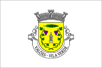 Mural crown Argent with three visible towers (village rank) and white scroll reading in black upper case serifed letters "VALÕES - VILA VERDE".