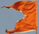 The swallowtail, saffron (orange) colored flag ("Bhagawa Dhwaja" in Hindi) is